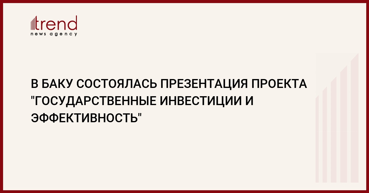 26 августа в Баку прошла презентация проекта "Государственные инвестиции и эффективность". Как передает Trend , проект реализовывается Агентством США по международному развитию (USAID) и Министерством экономического развития Азербайджана.