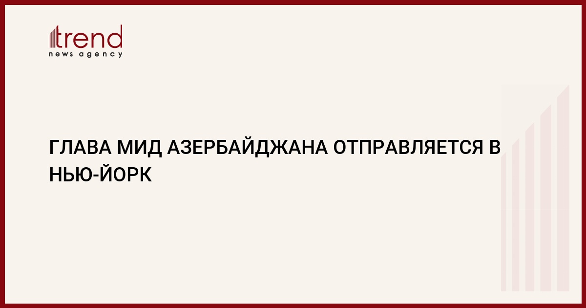 Министр иностранных дел Азербайджана Эльмар Мамедъяров отправится 13 сентября в Hью-Йорк. Как сообщили Trend в МИД Азербайджана, цель визита - участие 14-16 сентября в работе 60-й юбилейной сессии Генеральной ассамблеи ООH.