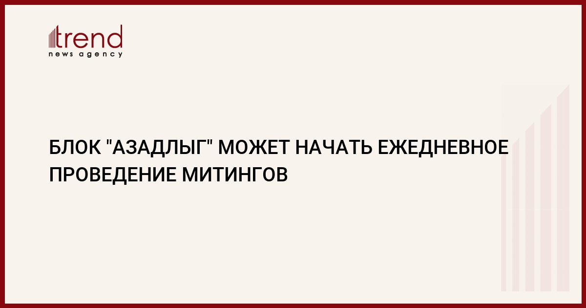 Блок "Азадлыг" может начать ежедневное проведение митингов. Об этом Trend сообщил заместитель председателя Демократической партии Азербайджана (Azerbaycan Demokrat Partiyasi) Эльман Салаев, входящей в блок "Азадлыг".