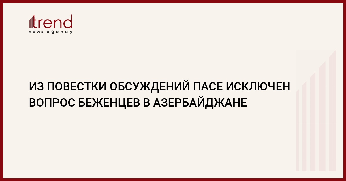 Из повестки начавшейся 3 октября осенней сессии Парламентской ассамблеи Совета Европы (ПАСЕ) по настоянию азербайджанской делегации исключено обсуждение доклада по беженцам в Азербайджане, Армении и Грузии. Об этом Trend сообщил член азербайджанской делегации ПАСЕ, депутат Бахтияр Алиев.