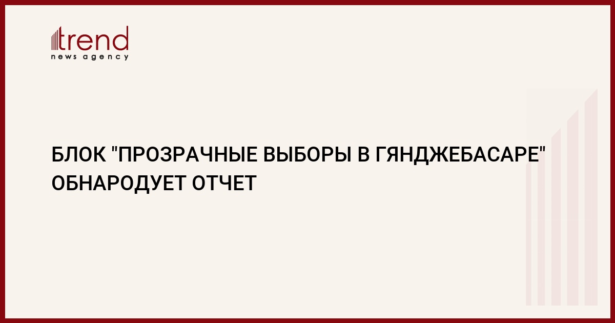 Отметим, что блок "Прозрачные выборы в Гянджебасаре" учрежден кандидатом от Ханларско-Дашкесанского избирательного округа N 101 Гюндузом Джалиловым, от Самух-Шамкирского избирательного округа N102 Эльханом Гамбаровым и от Гянджинского избирательного округа N39 Гафаром Чахмаглы. Цель создания блока -демонстрация единства кандидатов из Гянджебасарского региона.