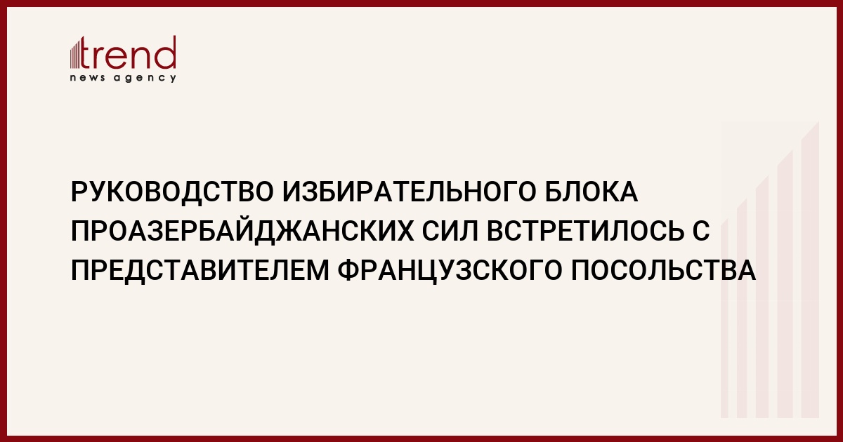 4 октября представитель посольства Франции в Азербайджане Байрам Балтии встретился с руководством избирательного блока Проазербайджанских сил. Об этом Trend сообщил соучредитель блока Проазербайджанских сил, председатель Исламской партии Азербайджана Гаджиага Hури.