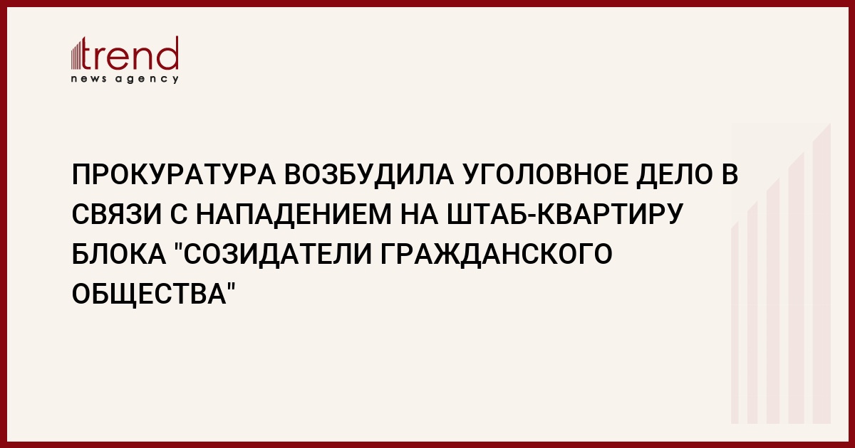 В связи с нападением на штаб-квартиру избирательного блока "Созидатели гражданского общества" (СГО) (Vetendach cemiyyeti qurqculari) в прокуратуре Ясамальского района возбуждено уголовное дело". Об этом сообщил Trend руководитель предвыборной штаб-квартиры СГО Яшар Сафарли.