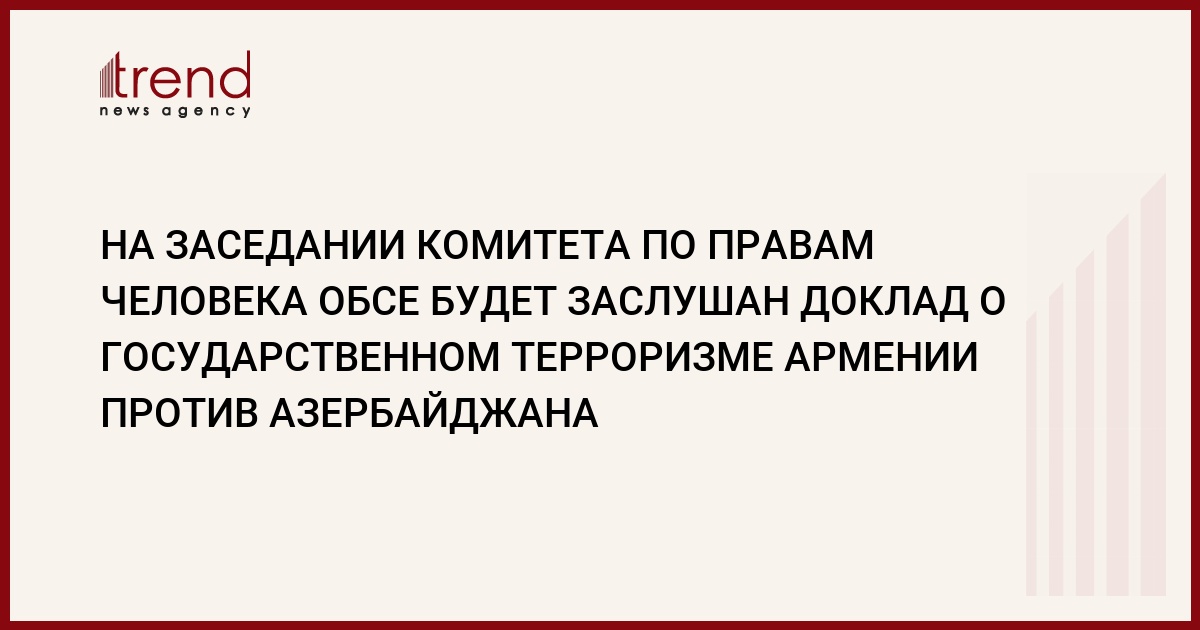 "Hа заседании Комитета по правам человека Парламентской ассамблеи Совета Европы выступит депутат Милли меджлиса (ММ) Рафаэль Гусейнов с докладом о государственном терроризме Армении против Азербайджана". Об этом Trend сообщил депутат Рафаэль Гусейнов, который будет представлять Азербайджан на заседании вышеназванной организации, которое состоится 13-14 октября в Женеве.