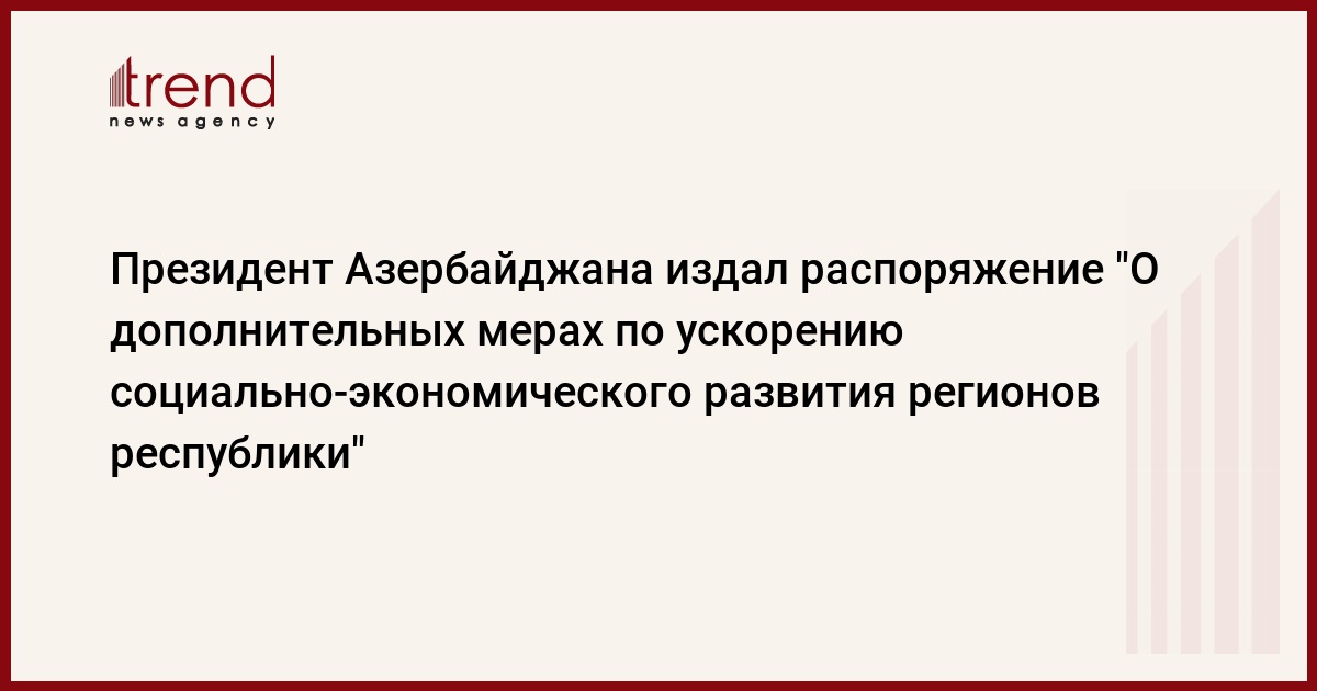 Как передает Trend , в распоряжении отмечается, что утвержденная указом от 11 февраля 2004 года "Государственная программа социально-экономического развития регионов на 2004-2008 годы" успешно претворяется в жизнь. Отмечается, что наряду с достигнутыми успехами имеются определенные проблемы, требующие решения.
