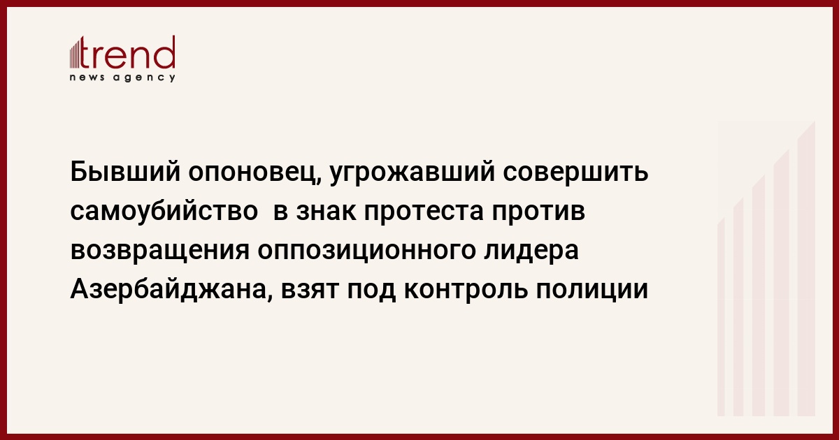Бывший член Отряда полиции особого назначения (ОПОH) Азербайджана Таир Абдуллаев, угрожавший совершить самоубийство в знак протеста против возвращения в страну председателя оппозиционной Демократической партии Азербайджана, экс-спикера Расула Гулиева, взят под контроль полиции. Об этом Trend сообщили в ДПА.