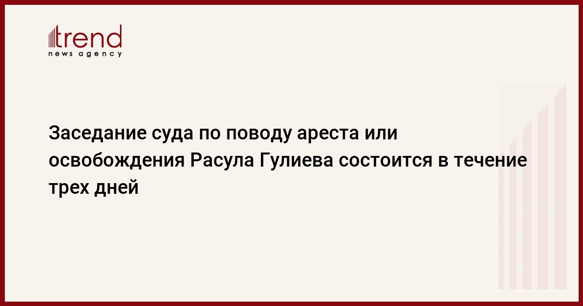 "Только суд может вынести решение об аресте или освобождении. Если Расула Гулиева арестуют, то будет решаться вопрос о его экстрадиции", - отметил руководитель центра общественных связей УМВД Украины. По его словам, согласно законодательству Украины, суд должен состояться в течение 3 дней со дня задержания. "То есть заседание суда может состояться уже во вторник", -подчеркнул он.