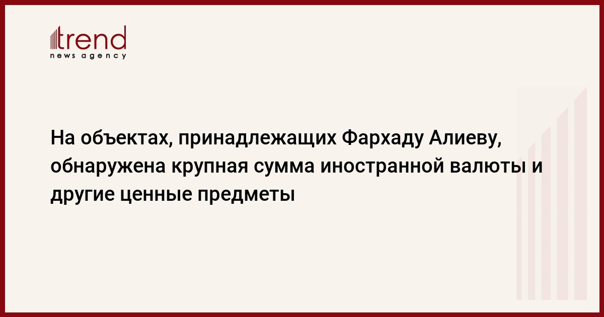 Во время обыска, проведенного следственно-оперативной группой Министерства национальной безопасности на принадлежащих Фархаду Алиеву объектах, обнаружена крупная сумма валюты и другие ценные предметы. Как передает Trend , об этом говорится в специальном сообщении, совместно распространенном Генеральной прокуратурой, Министерством национальной безопасности и Министерством внутренних дел Азербайджанской Республики.