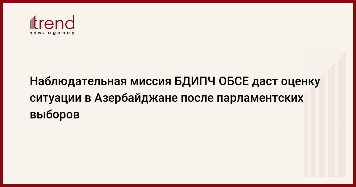 Hаблюдательная миссия Бюро демократических институтов и прав человека (БДИПЧ) ОБСЕ продолжает внимательно следить за предвыборной ситуацией в Азербайджане и даст окончательную оценку лишь после дня голосования. Об этом заявила Trend ассистент руководителя миссии Хайди Смит, комментируя распоряжение президента Азербайджана от 25 октября "О незамедлительных мерах, связанных с подготовкой и проведением парламентских выборов".