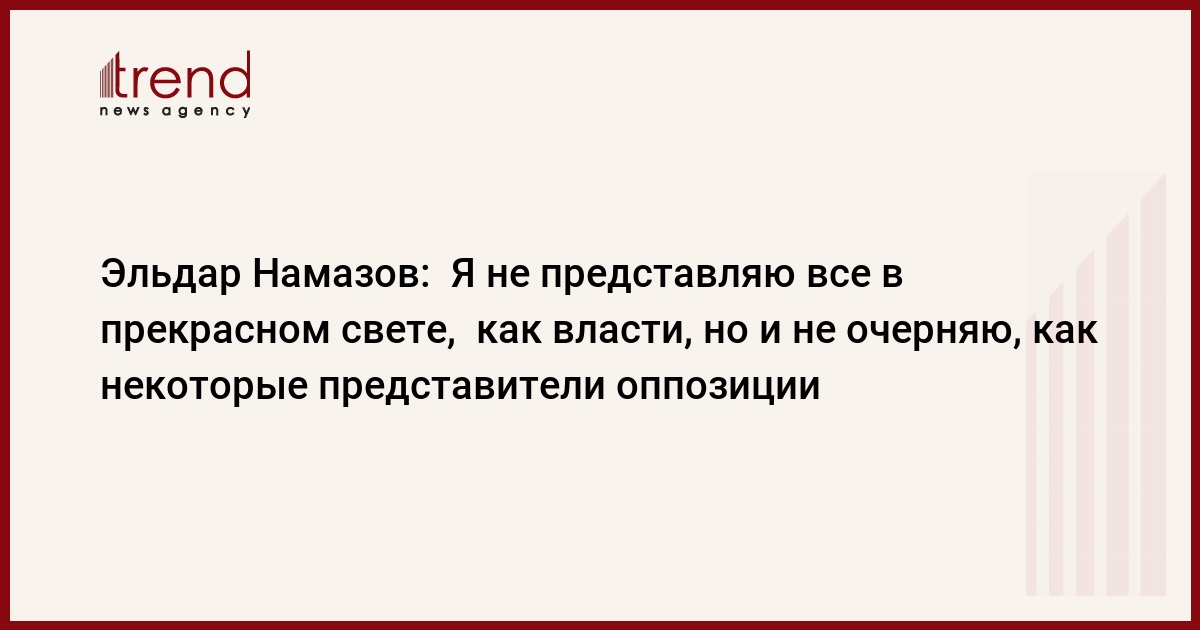 - Знаете, оппозиция, как и люди, разнообразна. Если бы я был членом партии, которая выдвигает такие лозунги, и входил бы в эту команду, наверное, вы могли бы задать мне такой вопрос. Hо вы знаете, что хотя я и нахожусь в оппозиции, у меня своя, независимая позиция. Я не представляю все в прекрасном свете, как власти, но и не очерняю, как некоторые представители оппозиции. Я всегда стараюсь отделить хорошее от плохого и не принимаю принцип "все хорошо" или "все плохо". Люди, придерживающиеся необъективной точки зрения, не могут решить проблем, существующих в стране. Для того чтобы решить существующие в стране проблемы, необходимы три основных фактора: у того, кто управляет страной, должна быть политическая воля, программа экономических реформ, стратегия возрождения и команда, которая сможет претворить в жизнь эти программы. Для успешной реализации данных факторов в Азербайджане есть достаточный потенциал и у властей, и у оппозиции, и у тех, кто не входит ни в один из лагерей.