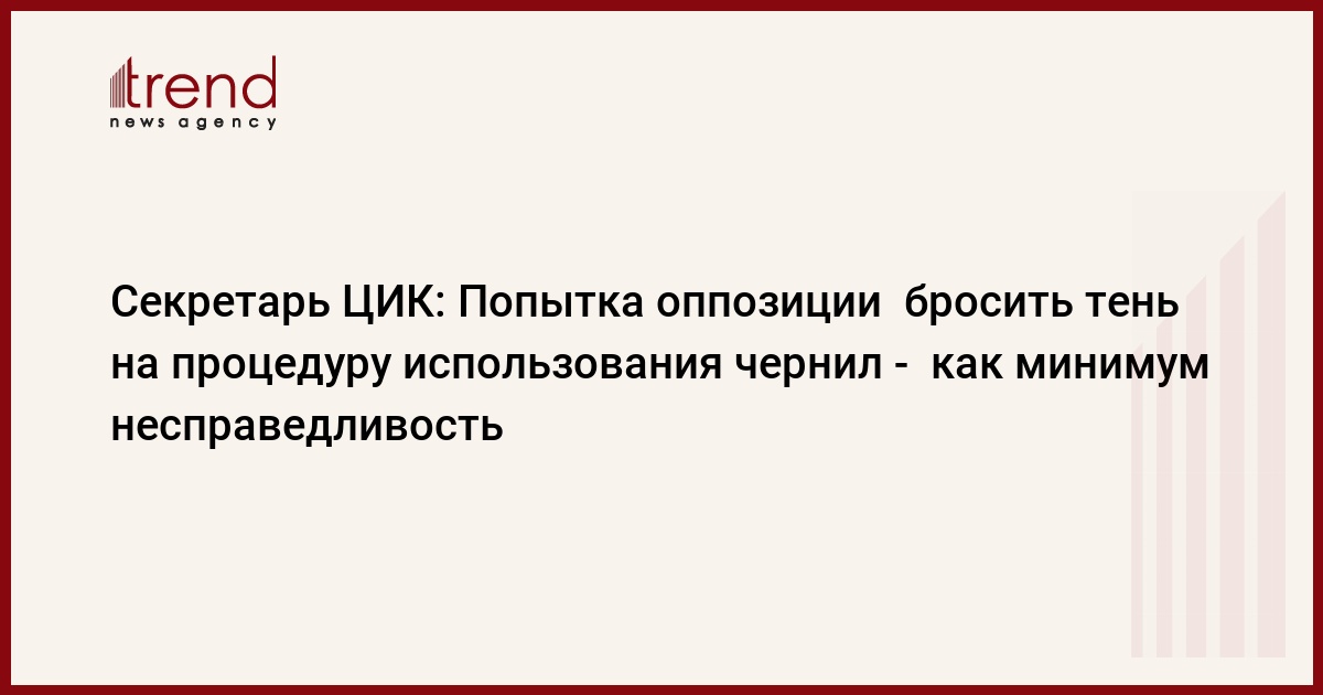 Лидеры блока "Азадлыг" заявили, что сомневаются в объективности проверки прозрачных чернил, которые будут наноситься на пальцы избирателей в день выборов. Секретарь ЦИК отметил, что если в день выборов будут подобные незаконные факты, их необходимо выявить. А до выборов, без каких-либо фактов выдвигать обвинения по этому поводу неправильно и это является попыткой астраховаться тех, кто знает, что проиграет на выборах. "Президент Ильхам Алиев предпринял все возможные шаги, подписал аспоряжения для проведения демократических выборов. Выборы могли быть прозрачными и без маркировки пальцев. Однако президент, учитывая требования политических сил и вероятность фальсификаций, дал указ по поводу использования чернил. Попытка оппозиции теперь бросить тень на процедуру использования чернил - как минимум несправедливость", - сказал H. Мамедов.