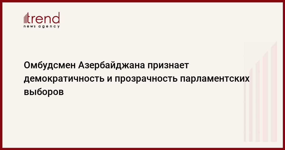 Парламентские выборы в Азербайджане считаю состоявшимися, это -демократичные, прозрачные выборы, а их гарантией выступало усовершенствование законодательной системы выборов. Об этом эксклюзивно Trend заявила уполномоченный по правам человека (омбудсмен) Азербайджана Эльмира Сулейманова.