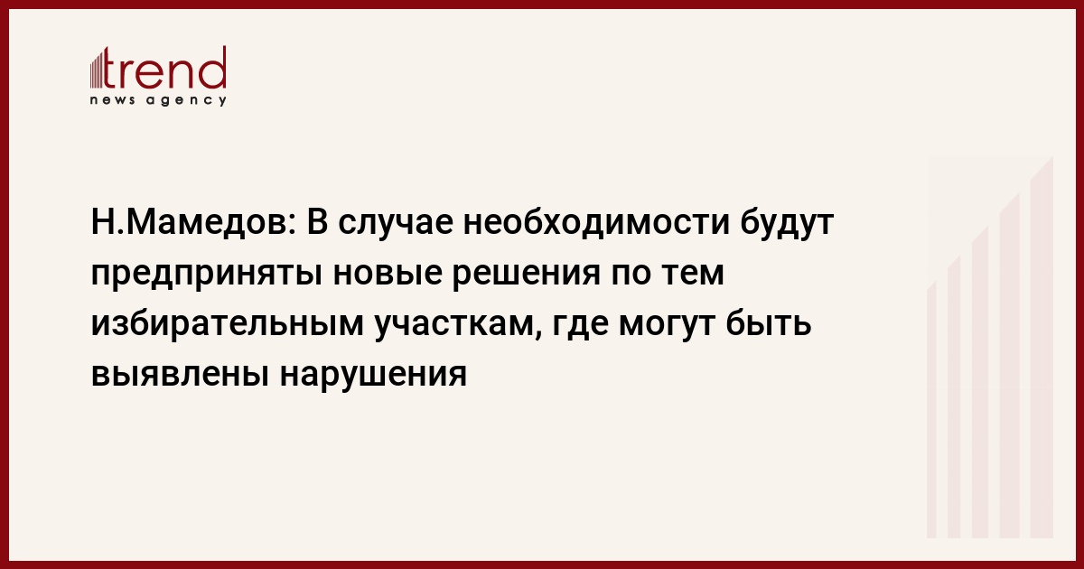 По его словам, руководство Азербайджана признает определенные нарушения на выборах и вмешательства исполнительных органов в этот процесс. Все жалобы и заявления, связанные с выборами, поступают в ЦИК, прокуратуру и расследуются. И если будет необходимость принятия новых решений в тех избирательных участках, в которых они отмечены, то такие шаги будут предприняты, резюмировал он.