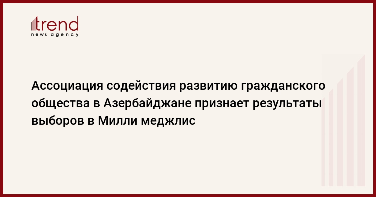 Рабочая группа Ассоциации содействия развитию гражданского общества в Азербайджане (АСРГОА), осуществлявшая функции местного наблюдателя на парламентских выборах 6 ноября, представила отчет. Об отчете Trend сообщили в ассоциации.