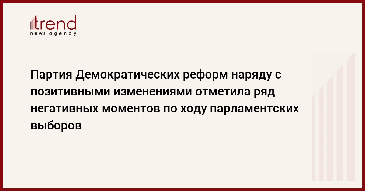 Партия Демократических реформ, проанализировав ход и результаты парламентских выборов 6 ноября 2005 года, считает необходимым отметить наряду с некоторыми позитивными изменениями и ряд негативных моментов. Об этом, как сообщает Trend , говорится в сообщении партии. Согласно сообщению, выборы отражают общую ситуацию в стране, несовершенство демократических институтов и низкую политическую культуру.