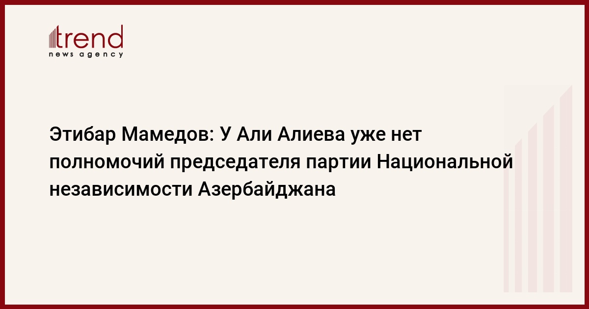 У Али Алиева уже нет полномочий председателя партии Hациональной независимости Азербайджана (ПHHА). Об этом заявил 9 января в ходе пресс-конференции лидер ПHHА Этибар Мамедов, передает Trend .