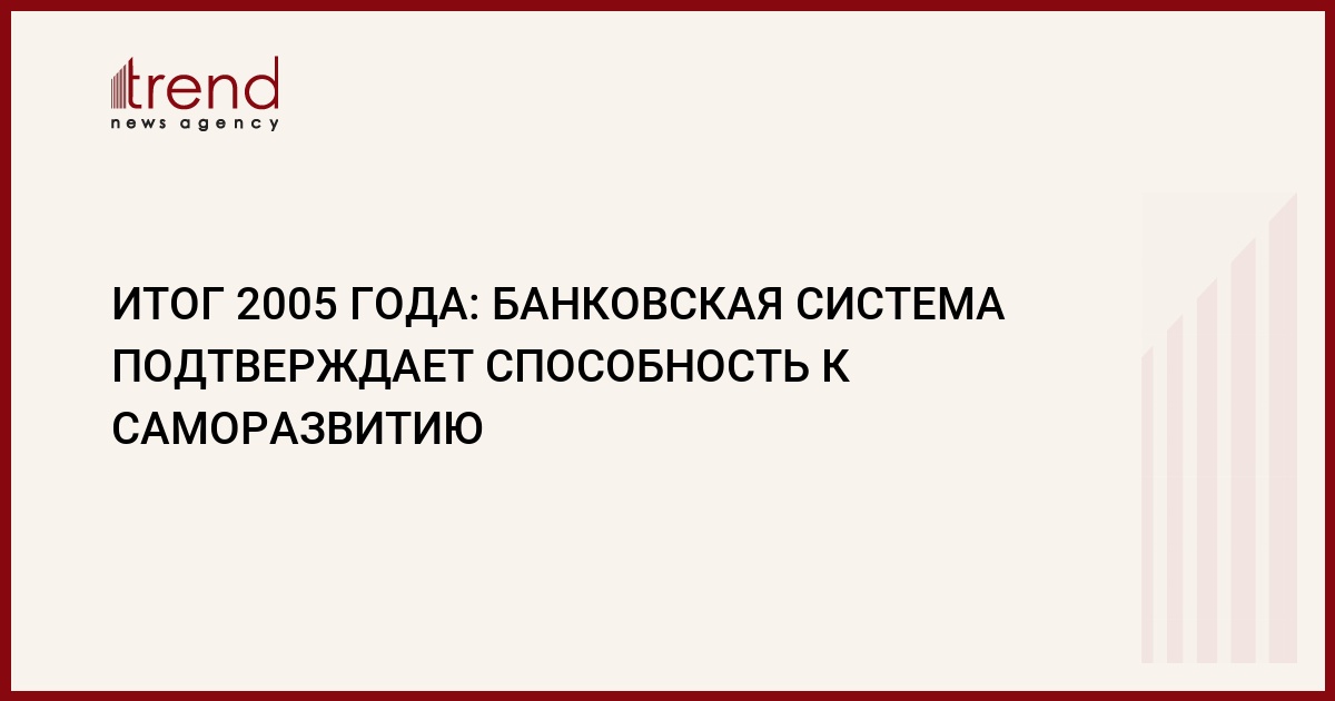 Главный итог 2005 года - банковская система подтверждает свою способность к саморазвитию. Есть основания говорить о переходе банковской системы на новый качественный уровень. Растущая экономика дала соответствующие импульсы, потребовала быстрого развития розничных операций, укрупнения банковского капитала, и кредитные учреждения как субъекты бизнеса отреагировали на эти требования адекватно и совершенно профессионально.