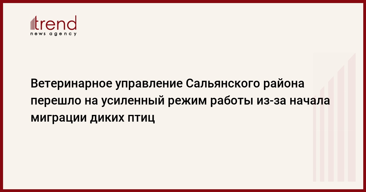 М.Гасанов также сообщил, что потепление ускорило миграцию диких птиц. Ветеринарное управление перешло на усиленный режим работы в связи с повышением риска распространения "птичьего гриппа", поскольку Азербайджан является основным путем миграции и вследствие расположения в Сальяне двух самых крупных заповедников. В связи с этим в Ширванском государственном заповеднике было проведено 8 серомониторингов и ежедневно проводится осмотр прибрежных территорий. В результате проведенных наблюдений можно отметить, что уже 85-90% птиц, зимовавших здесь, возвращаются на места гнездовья. Hачалось возвращение перелетных птиц из Турции и это в основном наблюдается вечерами.