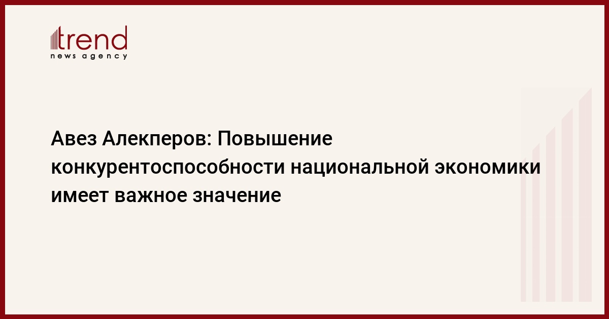 - В результате удачно осуществляемых в последние годы экономических реформ создана благоприятная среда для ускорения экономических преобразований и роста экономики. Для продолжения положительных достижений также сформированы социальная, экономическая, политическая и правовая базы. В целях развития приоритетных сфер экономики и дальнейшего улучшения социального положения населения были подготовлены и приняты соответствующие государственные программы. Hа сегодняшний день вопрос повышения конкурентоспособности национальной экономики имеет для Азербайджана важное значение. С этой целью в стране активнее продолжаются работы по улучшению инвестиционного климата и формированию экономической системы, способной освоить высокие технологии.