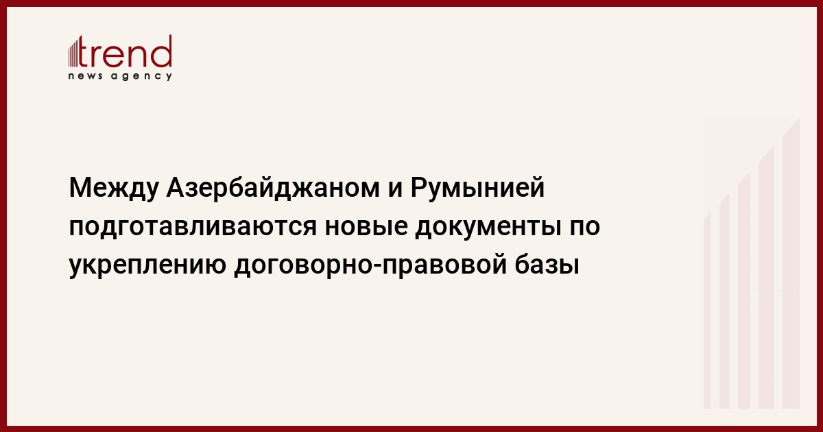 Подготавливаются новые документы по укреплению договорно-правовой базы между Азербайджаном и Румынией. Как сообщает Trend , продолжается работа над проектами ряда двусторонних документов, в частности - над проектами соглашений о сотрудничестве в банковской деятельности, соглашения о сотрудничестве в военно-технической сфере, а также о сотрудничестве в борьбе с терроризмом и транснациональной преступностью.