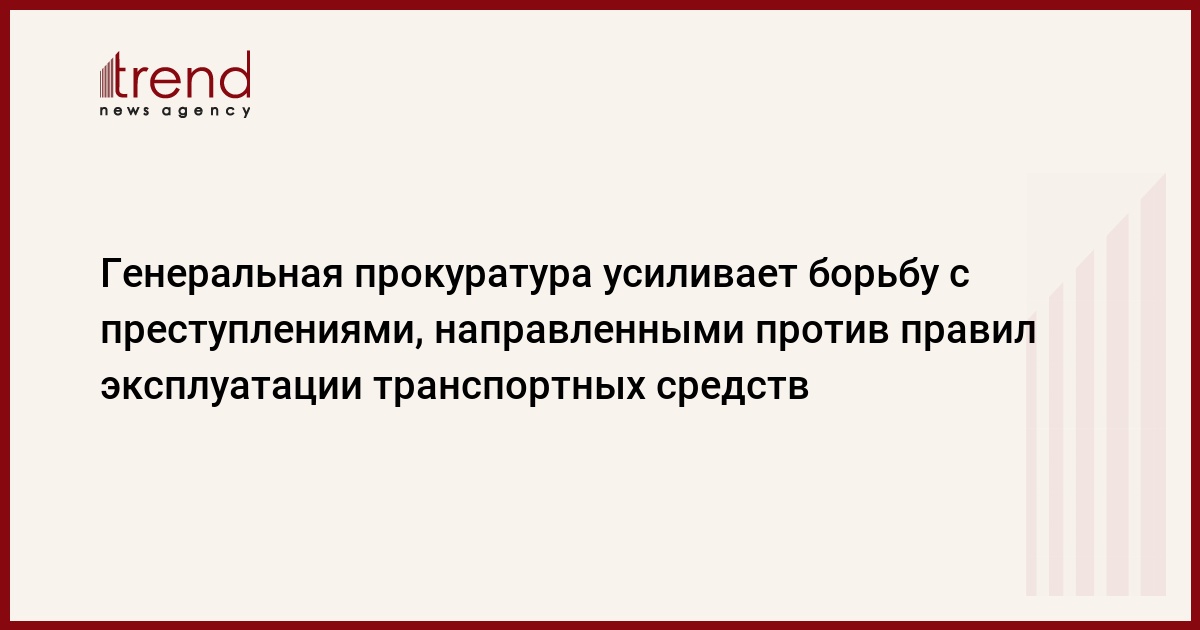 Генеральная прокуратура Азербайджана усиливает борьбу с преступлениями, направленными против правил эксплуатации транспортных средств. Об этом Trend сообщили в пресс-службе Генеральной прокуратуры Азербайджана.