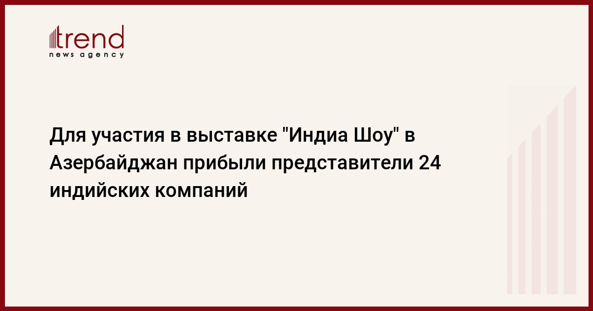 Отметим, что выставка "Индиа Шоу" пройдет с 24-28 марта в Спортивно-концертном комплексе имени Гейдара Алиева. Мероприятие организовано совместными усилиями Торгово-промышленной палаты Азербайджана, Правительственной организации по поощрению торговли Индии и посольства Индии в Баку.