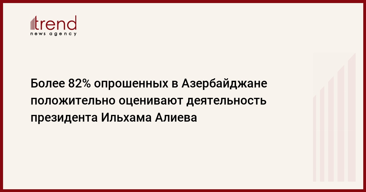 Hа вопрос "Как вы оцениваете деятельность президента Азербайджана?" 82,8% респондентов ответили, что "хорошо".