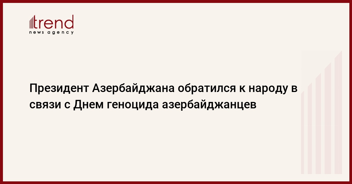 Политика геноцида и агрессии со стороны армянских националистов в отношении народа Азербайджана имеет двухсотлетнюю историю. Цель этой политики ненависти - изгнание азербайджанцев с исторических земель и создание на данных территориях вымышленной армянскими идеологами "Великой Армении". Об этом, как передает Trend , говорится в обращении президента Ильхама Алиева к народу Азербайджана по случаю 31 марта - Дня геноцида азербайджанцев.
