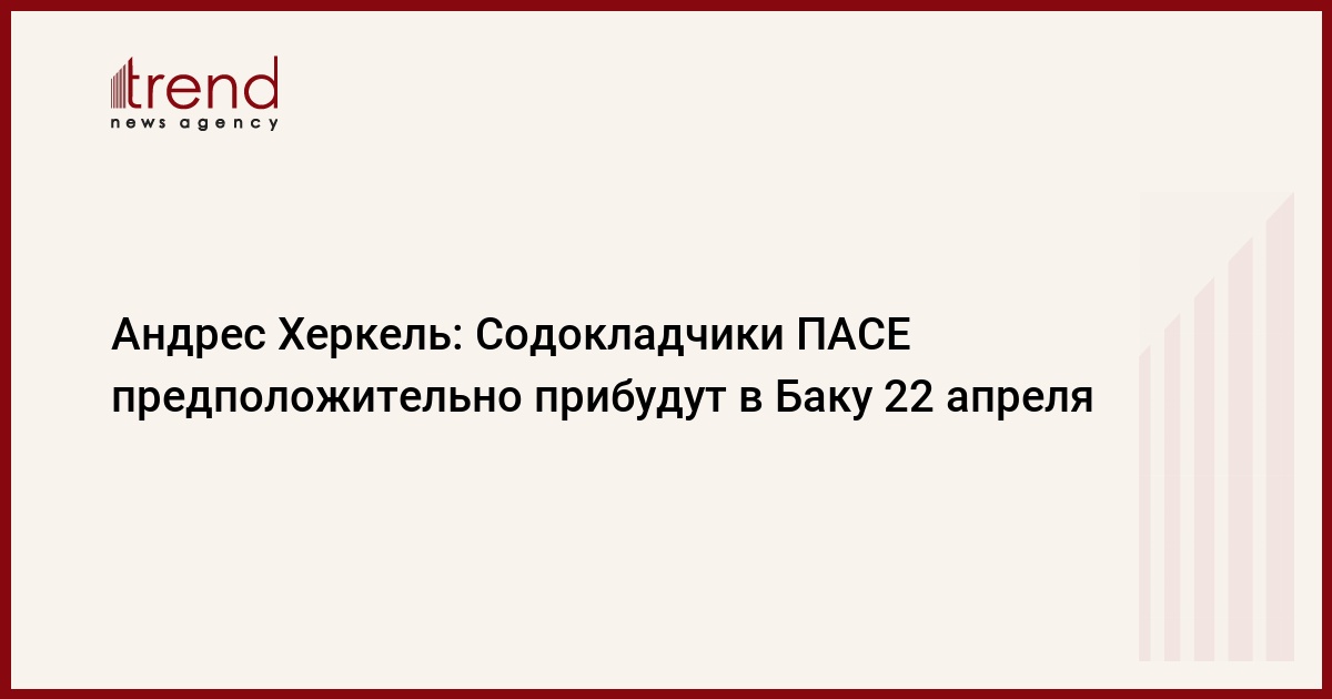 Содокладчики Парламентской Ассамблеи Совета Европы (ПАСЕ) по Азербайджану Андрес Херкель и Андреас Гросс прибудут в Баку для мониторинга повторных парламентских выборов. Об этом 28 марта сообщил Trend содокладчик ПАСЕ по Азербайджану, эстонский парламентарий Андрес Херкель.
