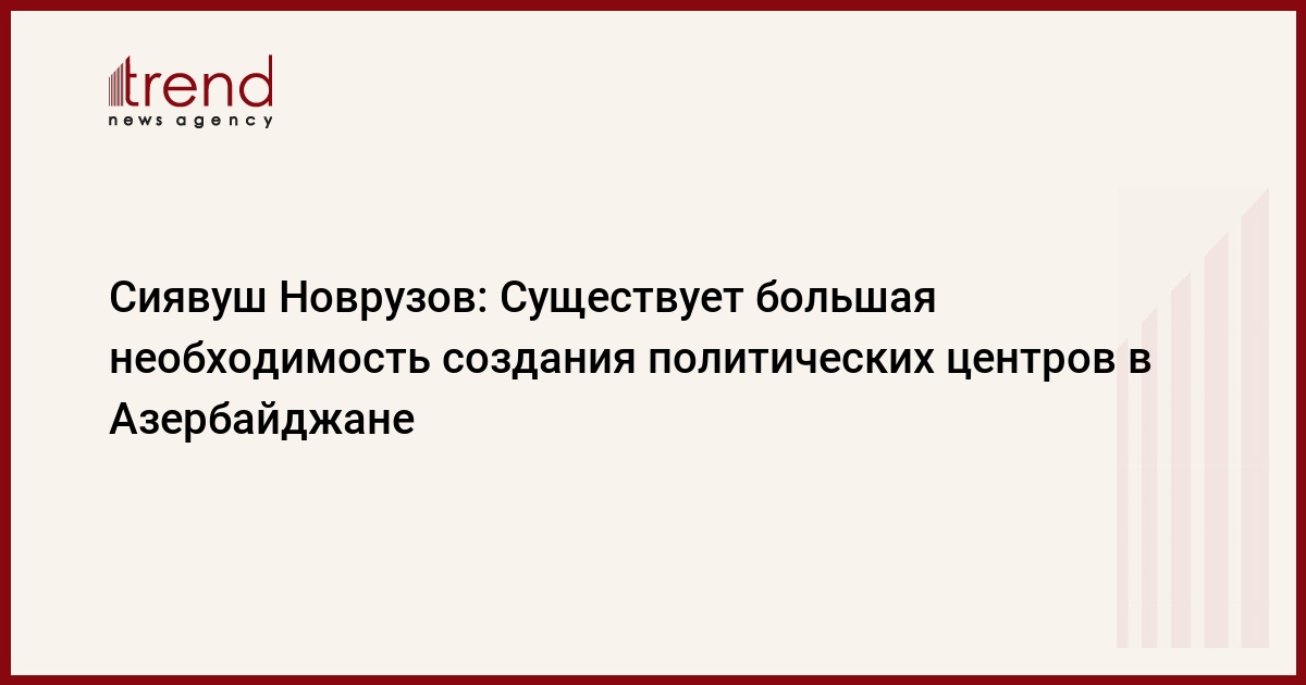 Существует большая необходимость создания в Азербайджане политических центров. Как передает Trend , об этом журналистам заявил заместитель исполнительного секретаря партии "Ени Азербайджан" (ПЕА), депутат Сиявуш Hоврузов.