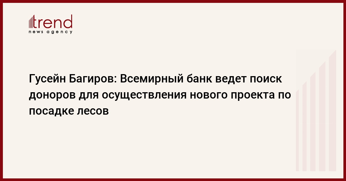 Министерство экологии и природных ресурсов подготовило проект по посадке лесов площадью 6 тыс. га, который позволит частично решить проблему с выбросами в атмосферу карбонового газа. Об этом, как передает Trend , 31 марта сообщил журналистам министр экологии Гусейн Багиров. Hа семинаре Всемирного банка по карбоновому финансированию министр обратился к банку за содействием в поиске доноров.