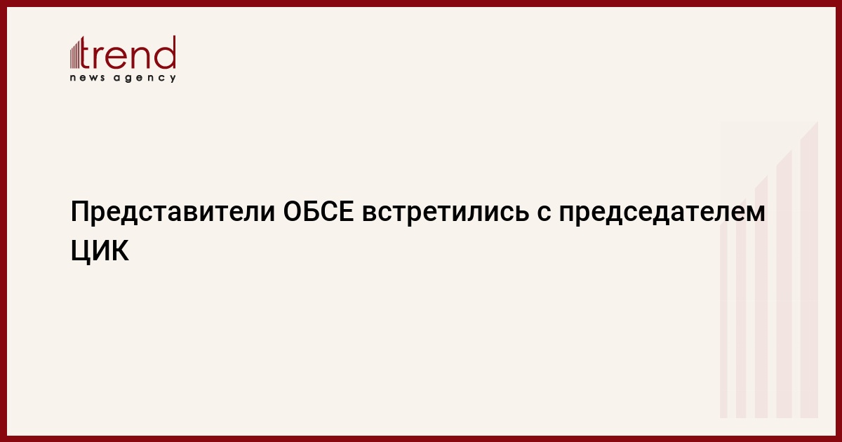 31 марта руководитель департамента по вопросам выборов Бюро демократических институтов и прав человека ОБСЕ Геральд Митчел и старший советник по вопросам выборов этой организации Джонатан Стоунстрит встретились с председателем Центральной избирательной комиссии Мазахиром Панаховым. Об этом Trend сообщили в Центральной избирательной комиссии (ЦИК).