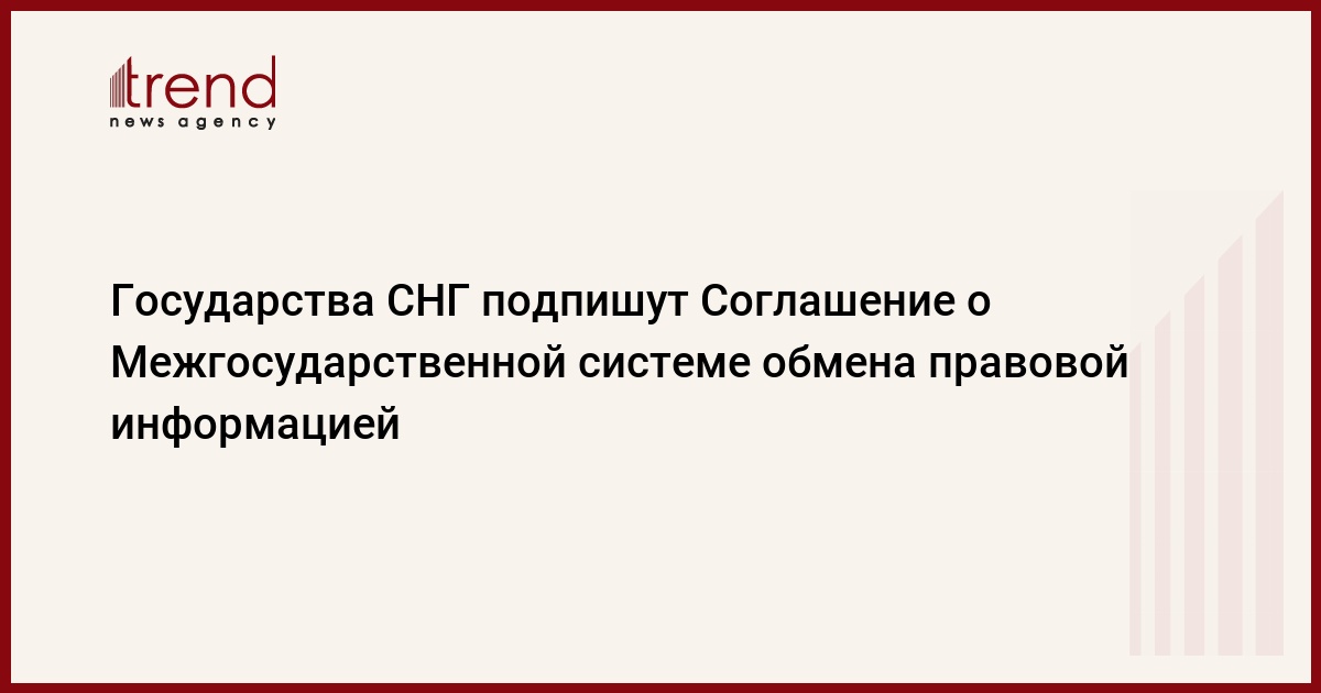 Государства СHГ планируют подписать Соглашение о Межгосударственной системе обмена правовой информацией. Проект соглашения будет доработан на предстоящем 22 сентября в Минске заседании экспертной группы, передает Trend со ссылкой на Исполнительный комитет СHГ.