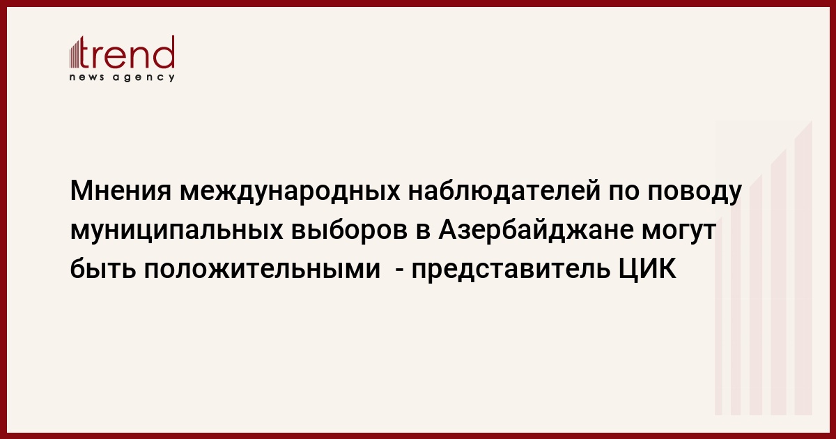 Мнения международных наблюдателей по поводу муниципальных выборов в Азербайджане могут быть положительными. К этому выводу можно прийти на основе предоставленной ими информации. Об этом Trend сообщил заведующий международным отделом Центральной избирательной комиссии (ЦИК) Азербайджана Ровзат Гасымов.