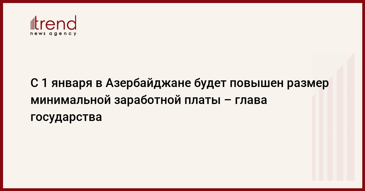 С 1 января 2007 года в Азербайджане будет повышен размер минимальной заработной платы. Об этом, как передает Trend , заявил президент Азербайджана Ильхам Алиев 7 октября на церемонии открытия автомобильной дороги Губа - село Хыналыг.