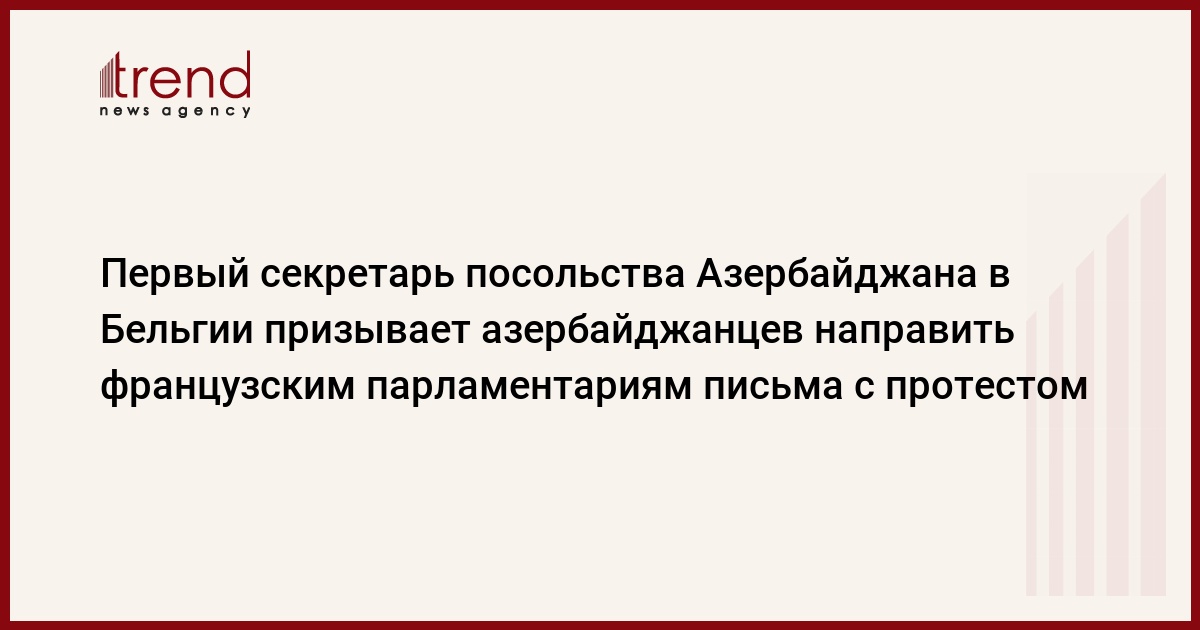 Первый секретарь посольства Азербайджана в Бельгии, почетный президент Координационного совета азербайджанских организаций Бенилюкс Фуад Гумбатов готовит обращение в парламент Франции. Об этом Trend сообщили в Координационном совете азербайджанских организаций Бенилюкс.