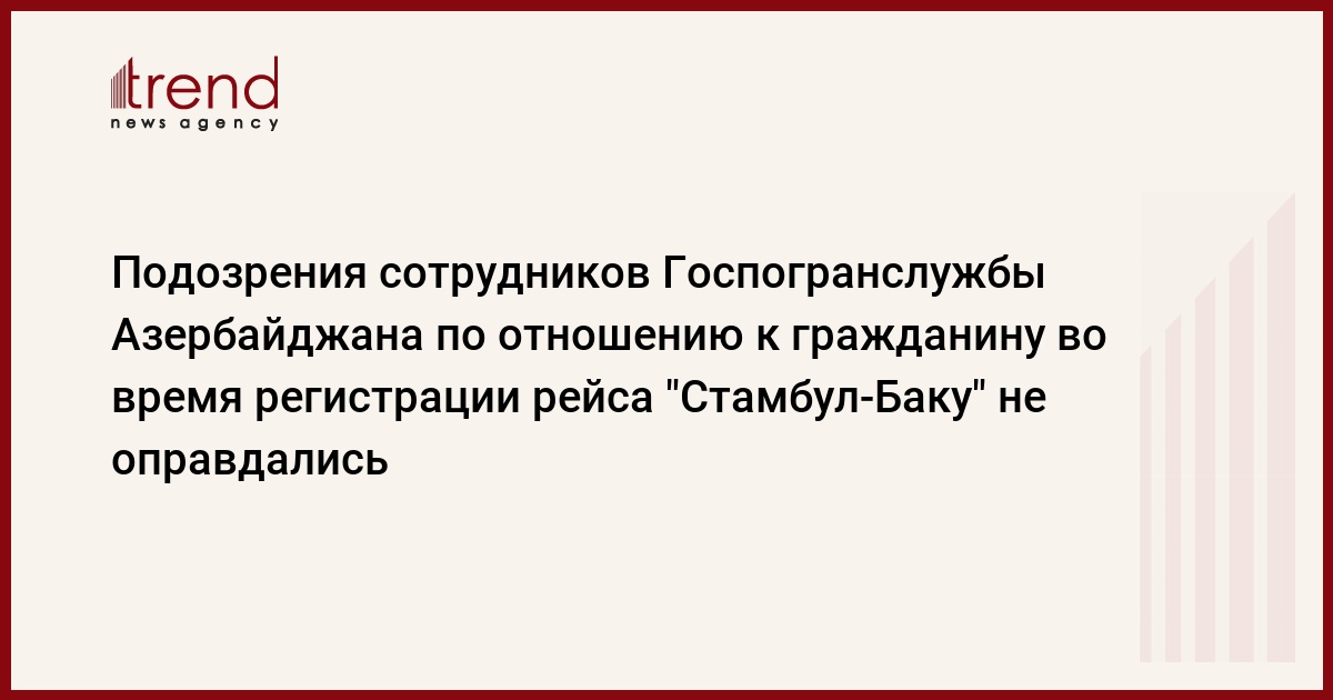 Подозрения сотрудников Государственной пограничной службы (ГПС) Азербайджана по отношению к гражданину Эмину Рафиг оглу Гусейнову во время регистрации рейса "Стамбул-Баку" в международном аэропорту имени Гейдара Алиева не оправдались. Об этом Trend сообщили из пресс-центра ГПС Азербайджана.