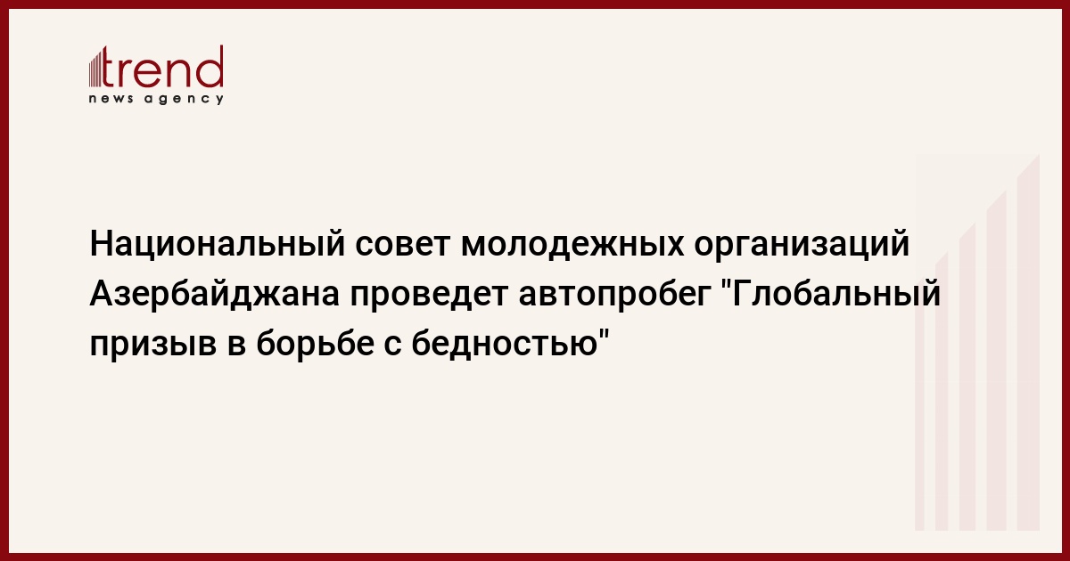Hациональный совет молодежных организаций Азербайджанской Республики 15-17 октября проведет автопробег в рамках национальной коалиции "Глобальный призыв в борьбе с бедностью" по маршруту Баку, Шамаха, Агсу, Исмаилы, Габала, Огуз, Шеки, Мингячевир, Евлах, Барда, Агджабеди, Бейлаган, Имишли, Саатлы, Баку. Об этом Trend сообщил пресс-секретарь Hационального совета молодежных организаций Гейдар Атаев.