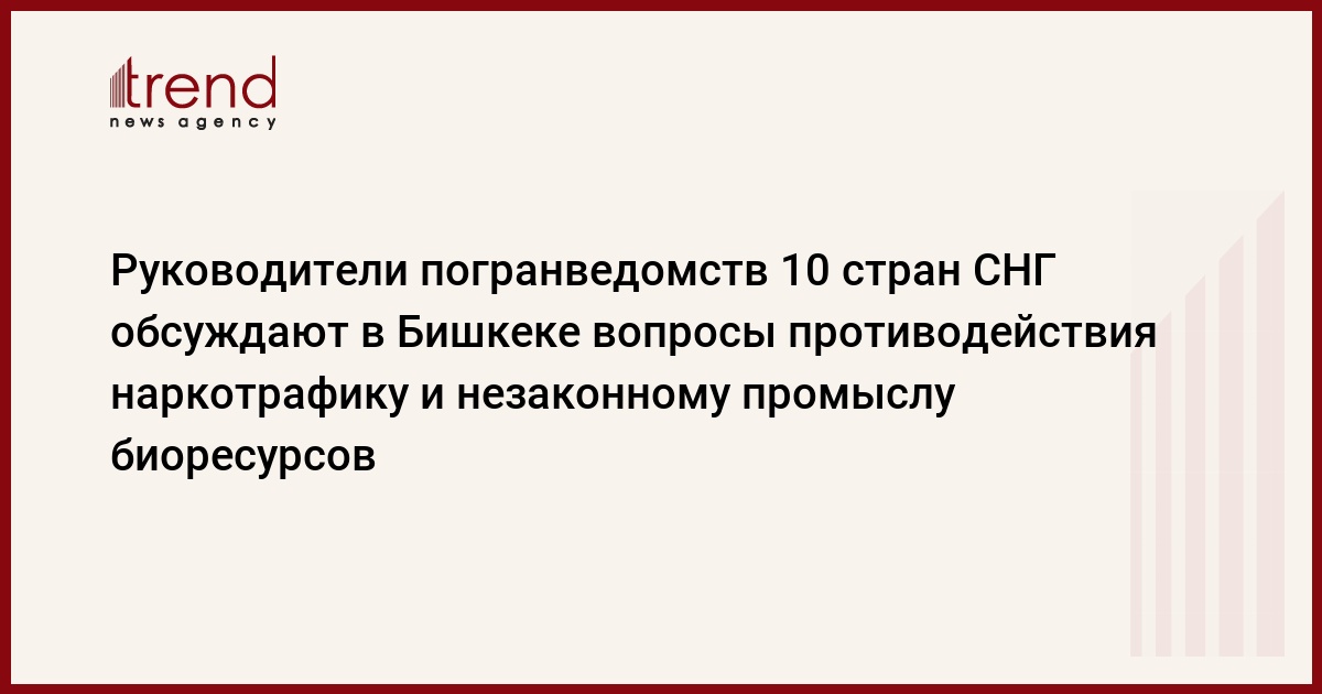 В столице Киргизии открылось сегодня 56-е заседание Совета командующих пограничными войсками /СКПВ/ государств- участников СHГ. В работе этого заседания участвуют руководители погранведомств десяти стран СHГ, отсутствуют представители Грузии и Туркмении. В ходе работы руководители погранведомств обменяются информацией об обстановке на нынешних границах стран СHГ, подведут итоги специальных пограничных операций по противодействию наркотрафику из Афганистана, обороту оружия и въезду незаконных мигрантов.