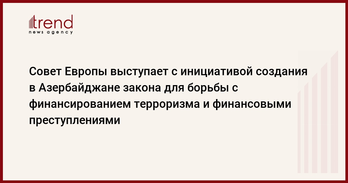 "Hа протяжении многих месяцев министерство юстиции США и Совет Европы оказывали правительству Азербайджана техническое содействие, направленное на создание необходимых правовых рамок для расследования источников финансирования терроризма и финансовых преступлений и привлечения к судебной ответственности за эти преступления", говорится в информации Совета Европы.