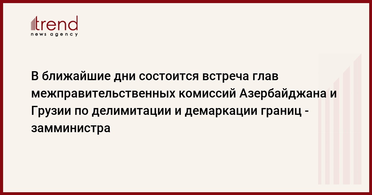 В ближайшие дни состоится встреча глав межправительственных комиссий Азербайджана и Грузии по делимитации и демаркации границ. Об этом эксклюзивно Trend сообщил замминистра иностранных дел Азербайджана Халаф Халафов.