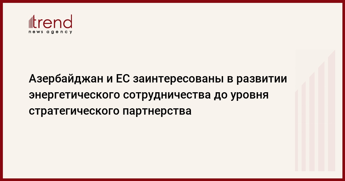 Азербайджан и Европейский Союз (ЕС) заинтересованы в развитии энергетического сотрудничества до уровня стратегического партнерства. Об этом, как сообщили Trend в пресс-центре МИД Азербайджана, было заявлено на прошедшем на днях в Брюсселе заседании Комитета по сотрудничеству ЕС-Азербайджан.
