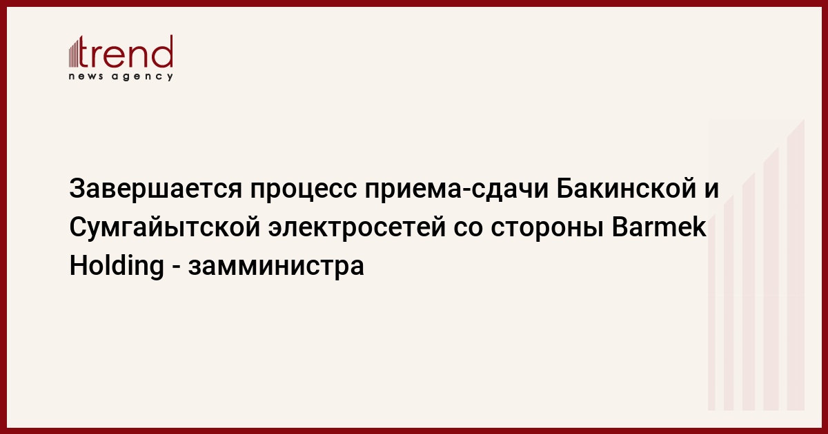 Процесс приема-сдачи активов компанией Barmek Holding акцимонерным обществам "Бакыэлектрикшебеке" и "Сумгайытэлектрикшебеке" подходит к завершению, передает Trend .