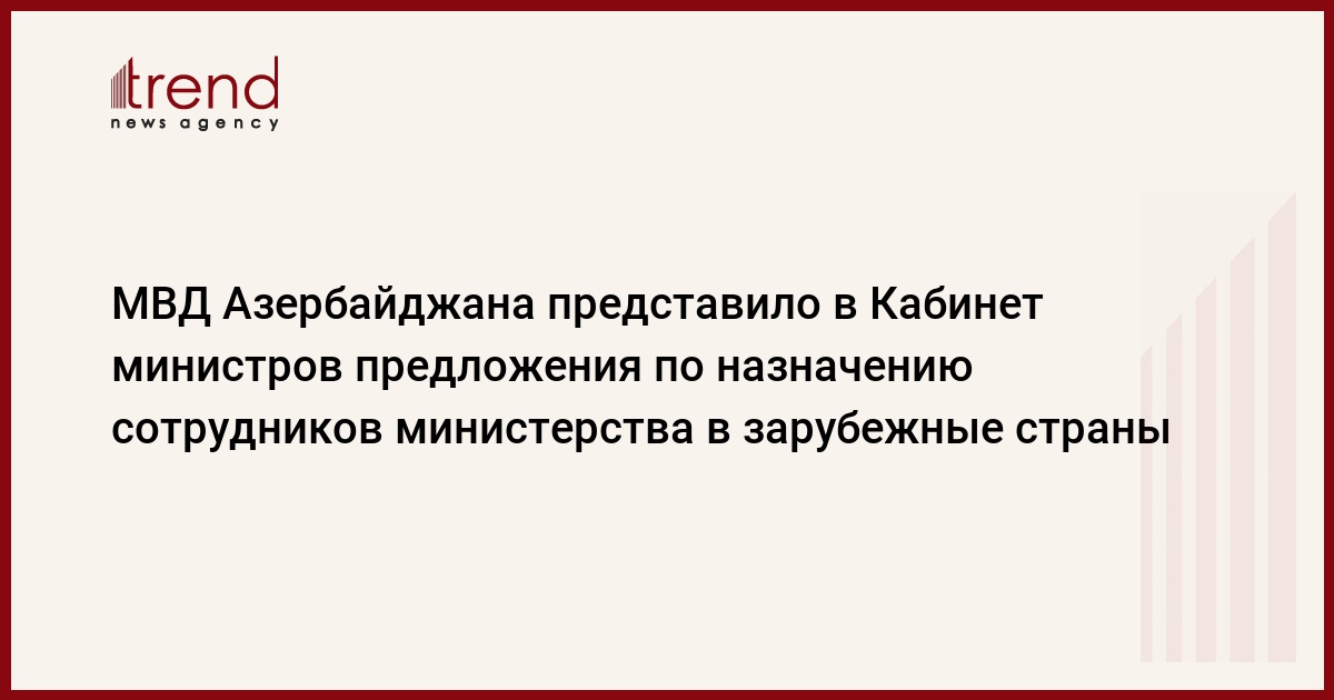 В связи с тем, что в некоторых странах открываются новые посольства Азербайджана, в Кабинет министров даны предложения по назначению сотрудников Министерства внутренних дел в эти страны. Об этом Trend сообщили в Управлении по международному сотрудничеству Министерства внутренних дел.