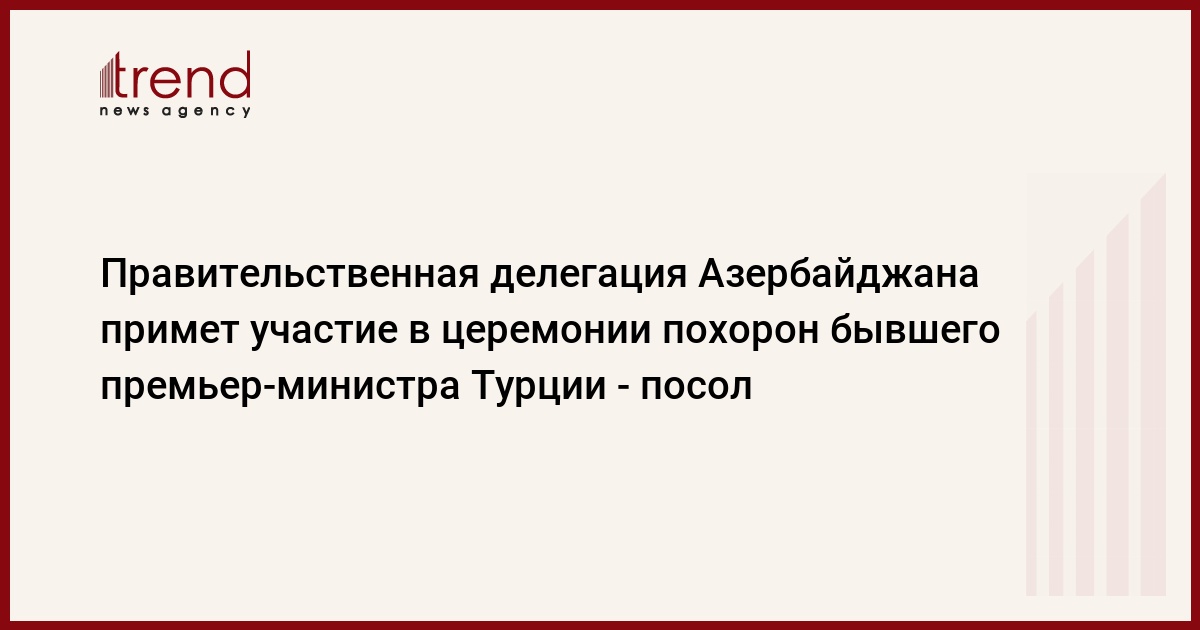 11 ноября делегация, возглавляемая первым заместителем премьер-министра Азербайджана Ягубом Эюбовым, прибудет в Турцию для участия в церемонии похорон бывшего премьер-министра Турции Бюлента Эджевита. Об этом сообщил Trend посол Азербайджана в Турции Закир Гашимов.