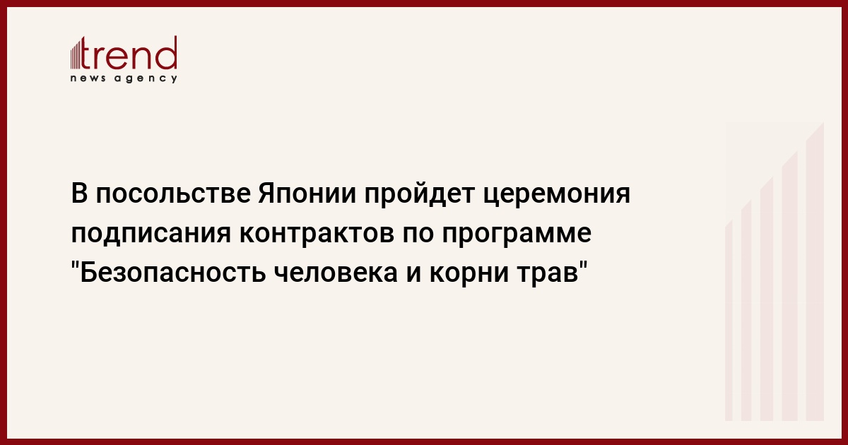 14 ноября в посольстве Японии в Азербайджане пройдет церемония подписания контрактов очередной программы "Безопасность человека и корни трав". Об этом сообщили Trend в посольстве Японии.