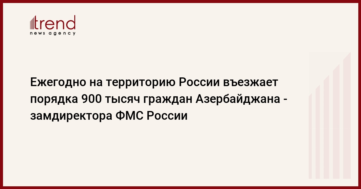 "По количеству въезда мигрантов на первом месте среди кавказских стран - Азербайджан - это порядка 900 тысяч человек ежегодно. Далее идут Грузия и Армения - порядка 400-500 тысяч граждан. А по количеству нелегальных мигрантов среди них лидируют граждане Азербайджана и Грузии". Об этом, отвечая на вопрос собкора " Trend а", заявил заместитель директора Федеральной миграционной службы России Вячеслав Поставнин.