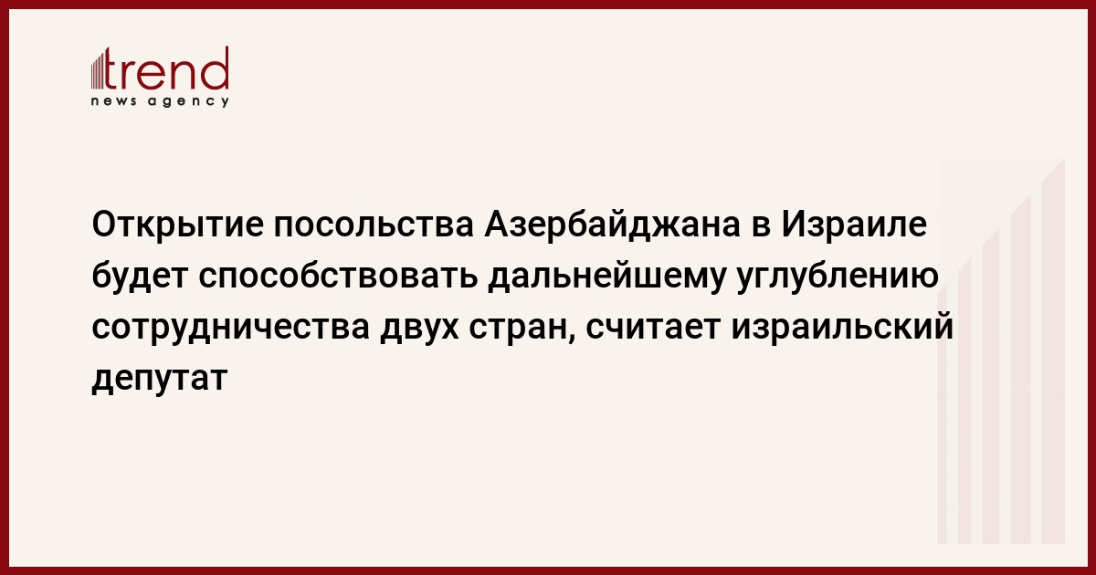 "В отношениях стран развиваются экономическая и политическая сферы, открытие посольства Азербайджана в Израиле будет содействовать еще большему сотрудничеству наших стран в этих областях",- считает она.
