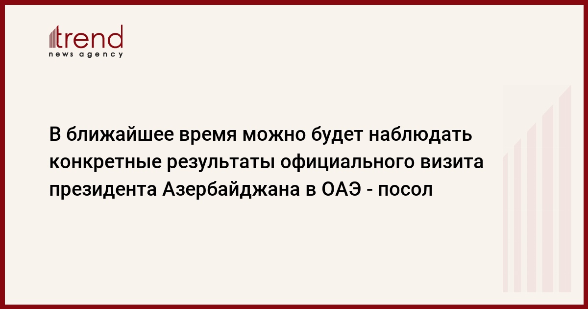 В ближайшее время можно будет наблюдать конкретные результаты официального визита президента Азербайджана Ильхама Алиева в Объединенные Арабские Эмираты (ОАЭ). Об этом эксклюзивно Trend сообщил посол Азербайджана в Абу-Даби Эльдар Салимов, комментируя итоги визита президента И.Алиева 20-21 ноября в ОАЭ.