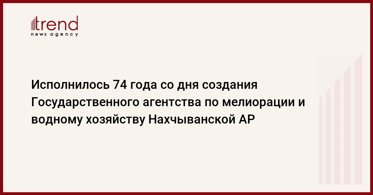 Исполнилось 74 года со дня создания Государственного агентства по мелиорации и водному хозяйству Нахчыванской Автономной Республики. Как передает региональный корреспондент " Trend а", в связи с этим в агентстве состоялось мероприятие, которое открыл генеральный директор Аскер Аскеров. Он рассказал об истории создания агентства.